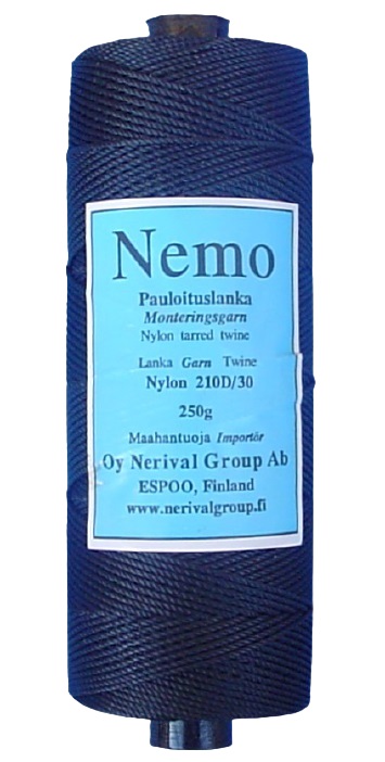 Nemo-pauloituslanka on käsitelty tervalla solmujen pitävyyden varmistamiseksi.